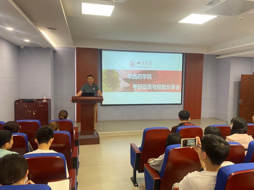 为进一步提升我院本科生核心竞争力,鼓励更多学生志存高远、投身药学科研工作,帮助学生做好个人发展规划,5月18日晚,学院在药科楼康弘报告厅开展深造动员与经验分享交流会。党委副书记章程、17级辅导员褚志文、18级辅导员陈体佳、3位2021年考研成功的同学以及17级临药、18级药学专业本科生参加了本次交流。