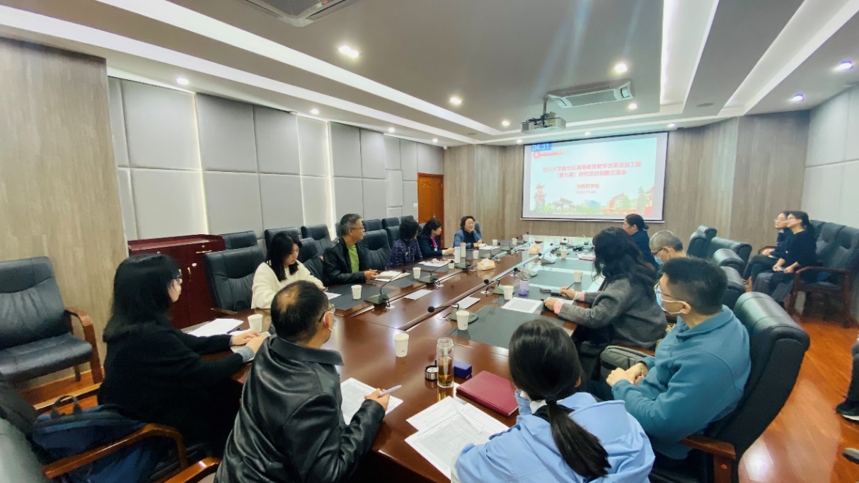 我院14个项目的负责人依次汇报了项目的主要内容,包括实施情况、取得的成果、创新点和应用情况等。此次学院的教改项目,研究范围涵盖专业建设、课程建设、课程思政、学风建设、教学组织建设、实践教学改革等多个方面。与会老师分享了经验和方法,并进行了深入的交流和探讨。